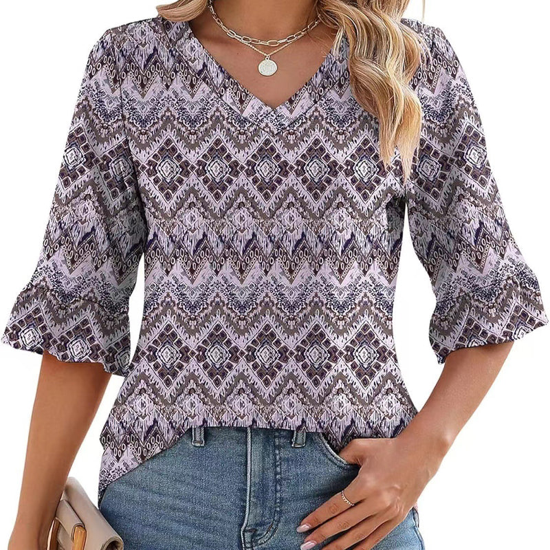 Hauts élégants à manches volantées et col en V pour femmes