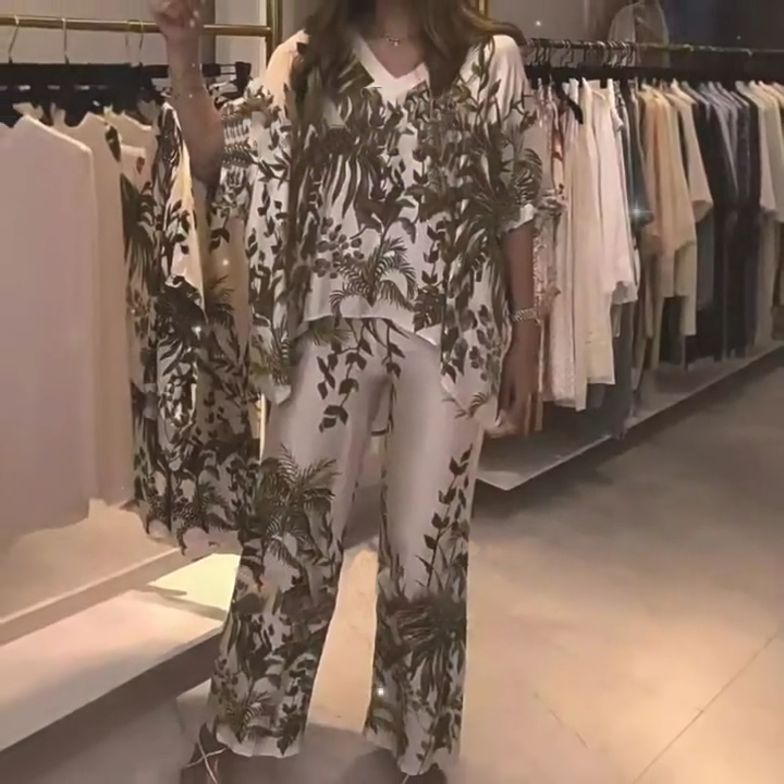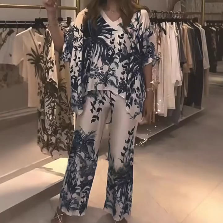 💕Ensemble 2 pièces décontracté à imprimé botanique pour femmes