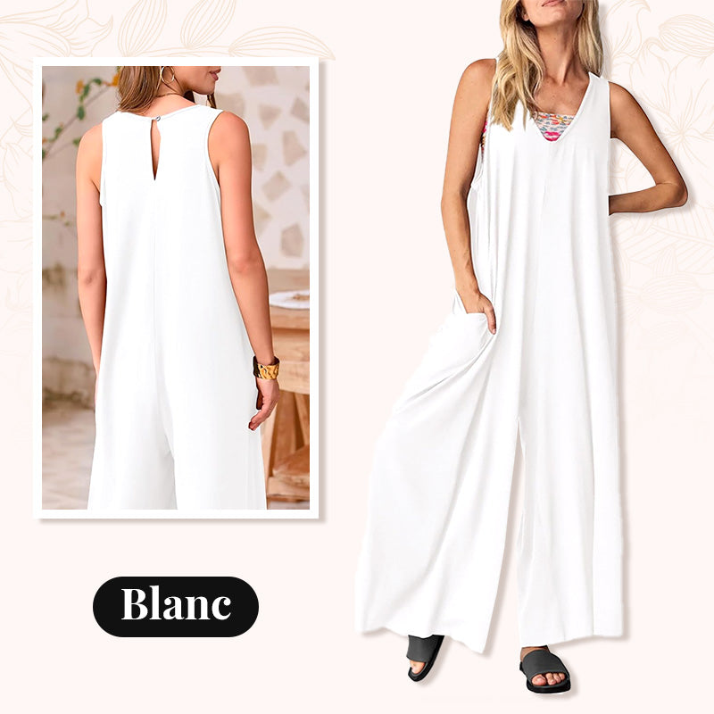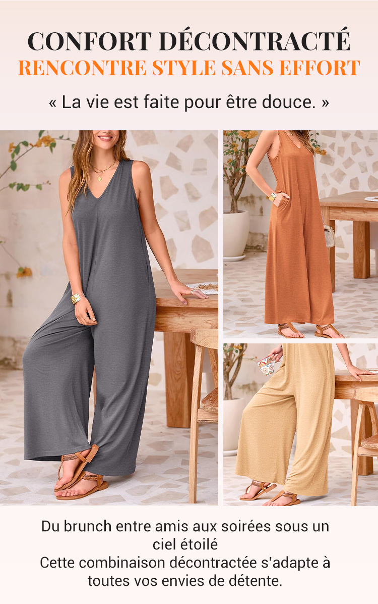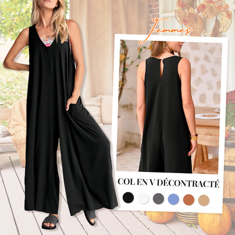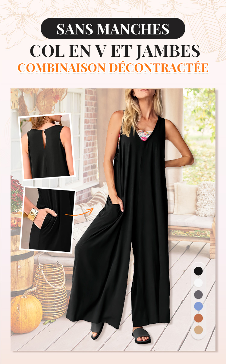 🔥🛍️Promotion chaude 50 % de réduction💃Combinaison Décontractée Sans Manches à Col en V et Jambes Larges pour Femmes🌸
