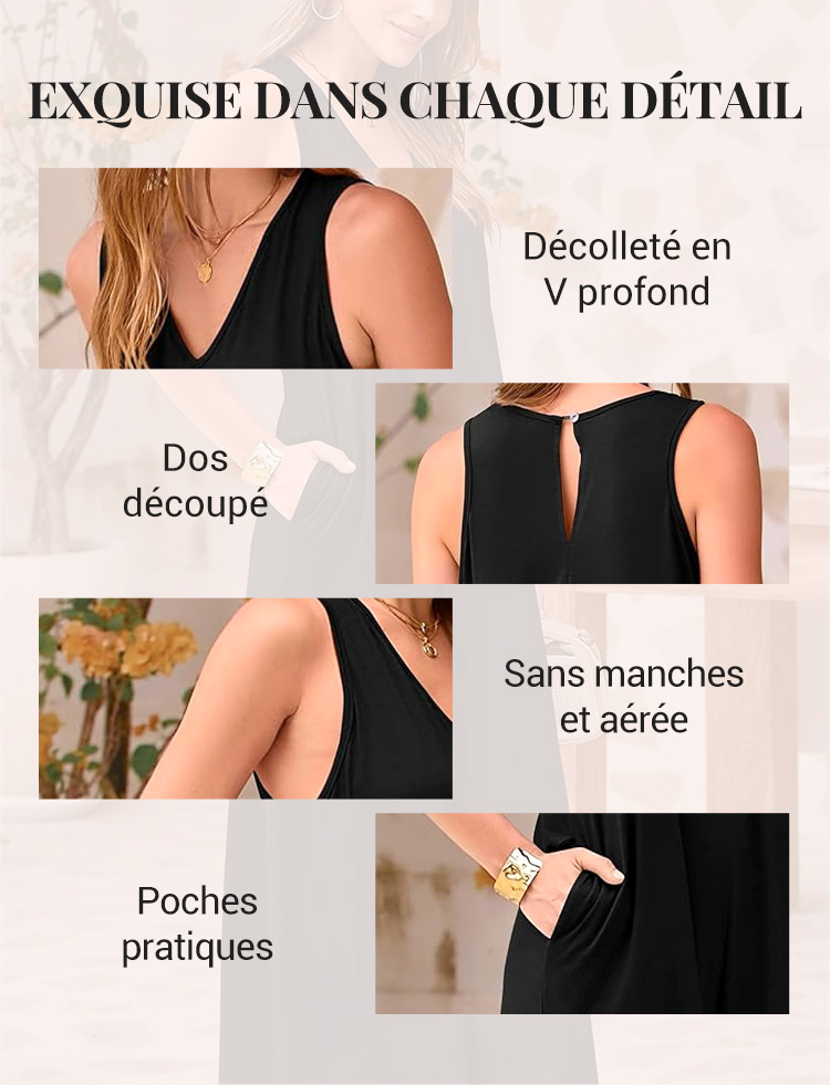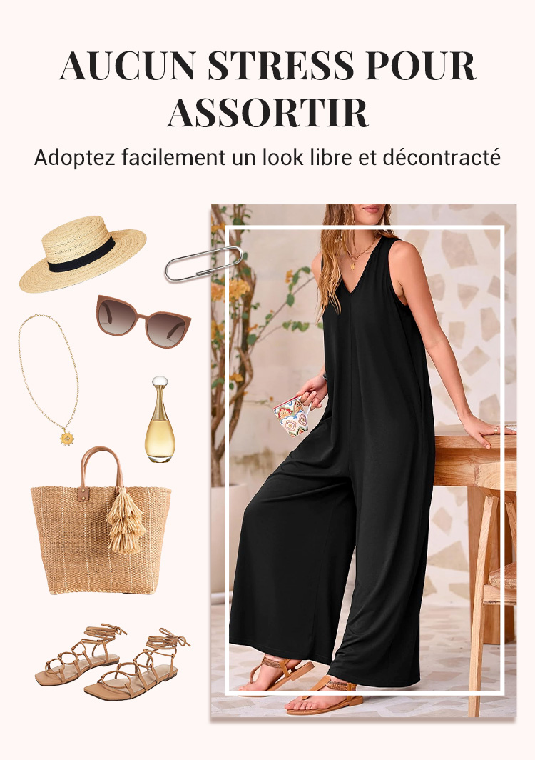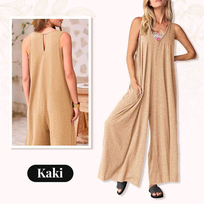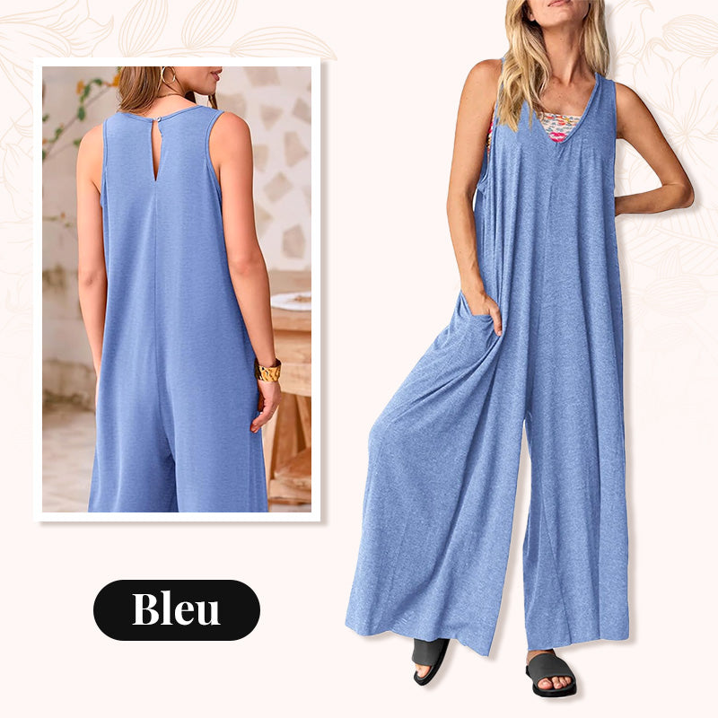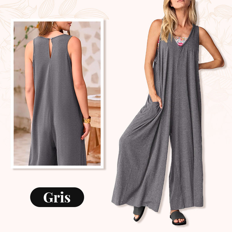 🔥🛍️Promotion chaude 50 % de réduction💃Combinaison Décontractée Sans Manches à Col en V et Jambes Larges pour Femmes🌸