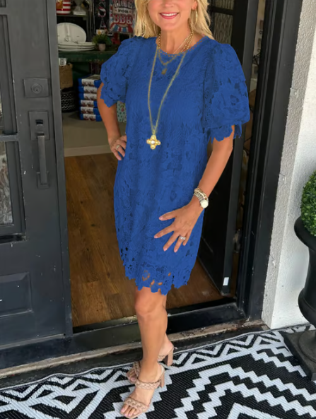 🎁Durée limitée -50 %⏳✨Robe à manches bouffantes en dentelle florale pour femme