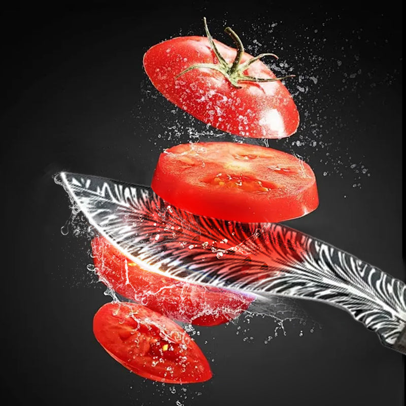 Couteau Tranchant en Acier Inoxydable avec Motif de Plume