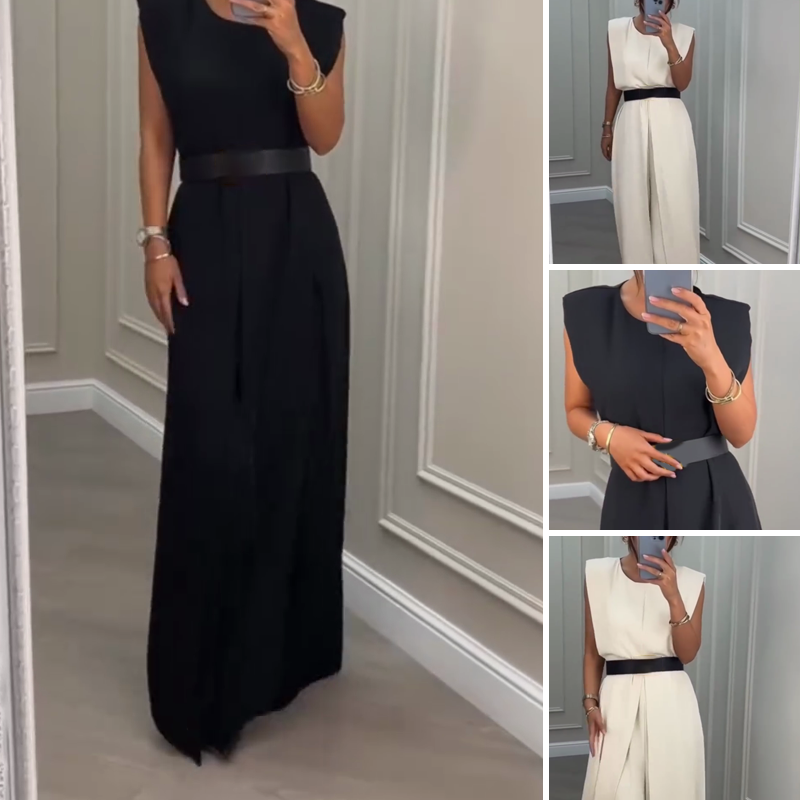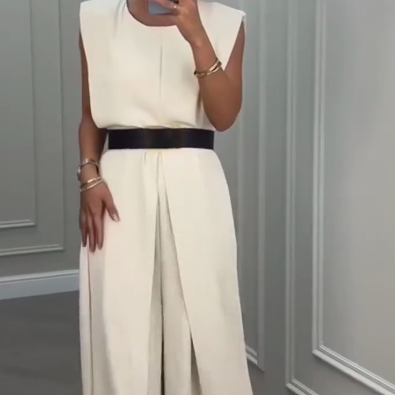 Combinaison unie à encolure ronde